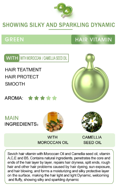 The Sevich line offers 8 types of capsules, each with its own unique effect — from intensive nourishment to damage protection. Choose the care that perfectly matches your hair’s needs.